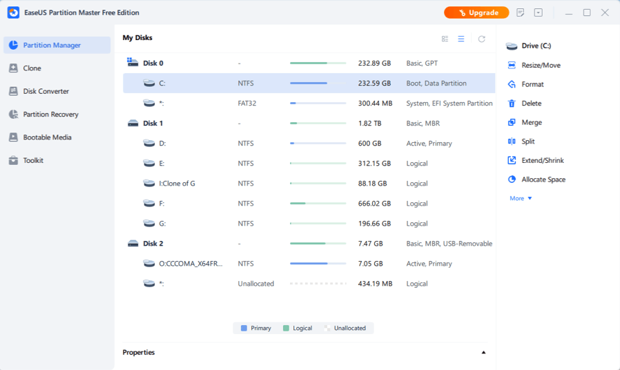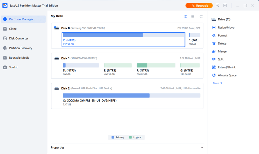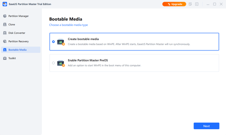 您可以使易我分区大师创建WinPE磁盘。它可以帮助您在Windows之前启动电脑,以检查有问题的计算机上的分区状态。